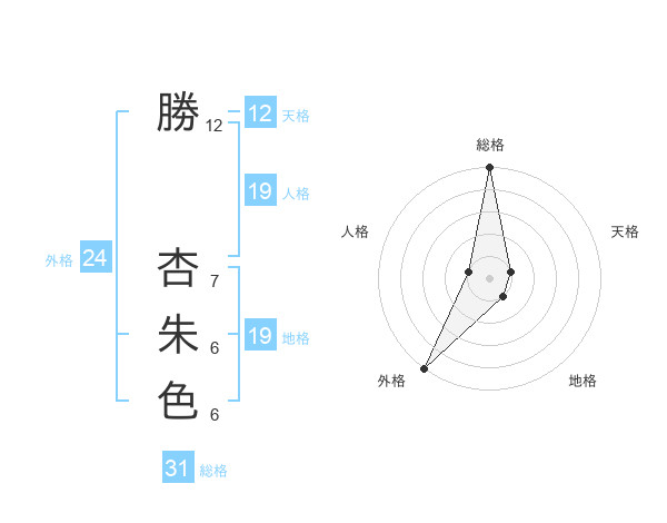 勝 杏朱色さんを姓名の画数から五運を鑑定