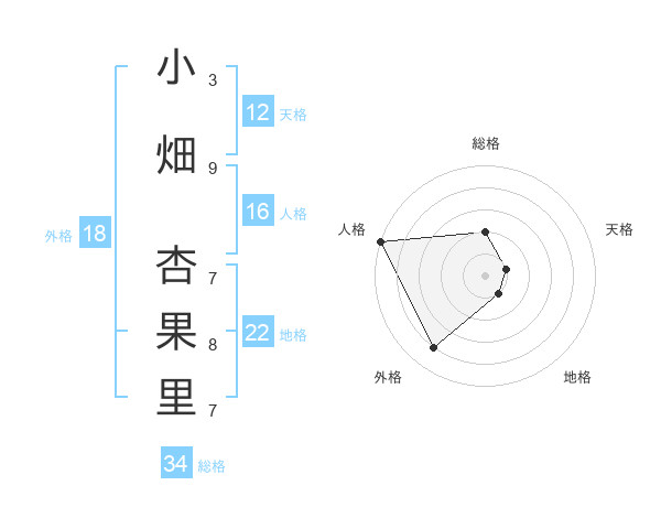 小畑 杏果里さんを姓名の画数から五運を鑑定
