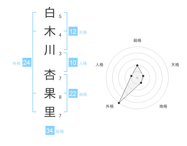 白木川 杏果里さんを姓名の画数から五運を鑑定