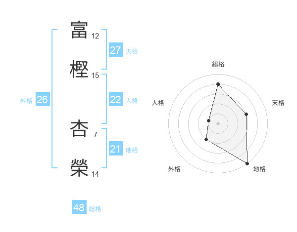 富樫 杏榮さんを姓名の画数から五運を鑑定