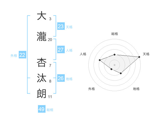 大瀧 杏汰朗さんを姓名の画数から五運を鑑定