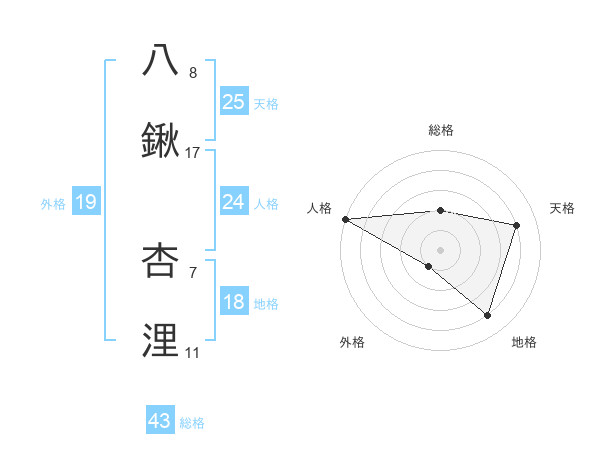八鍬 杏浬さんの天格は25画の4点!