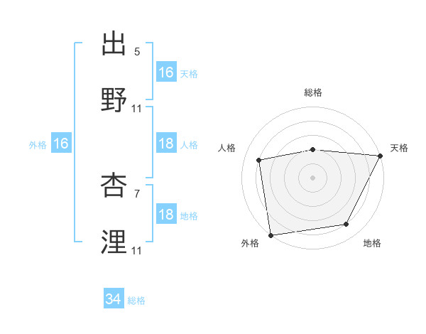 出野 杏浬さんを姓名の画数から五運を鑑定