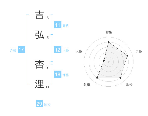 吉弘 杏浬さんの総格は29画の4点!