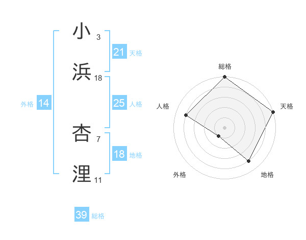 小浜 杏浬さんの天格は21画の5点!