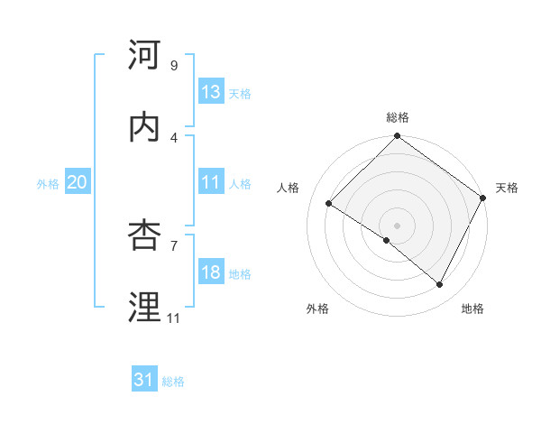 河内 杏浬さんを姓名の画数から五運を鑑定
