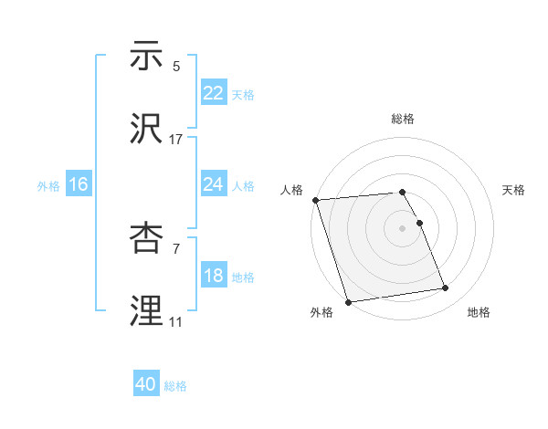 示沢 杏浬さんの総格は40画の2点!