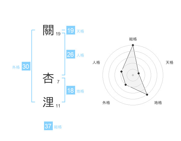關 杏浬さんの天格は19画の1点!