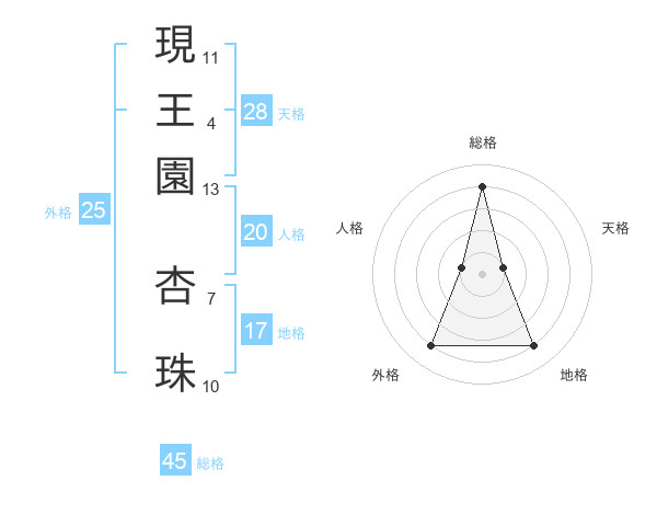 現王園 杏珠さんを姓名の画数から五運を鑑定