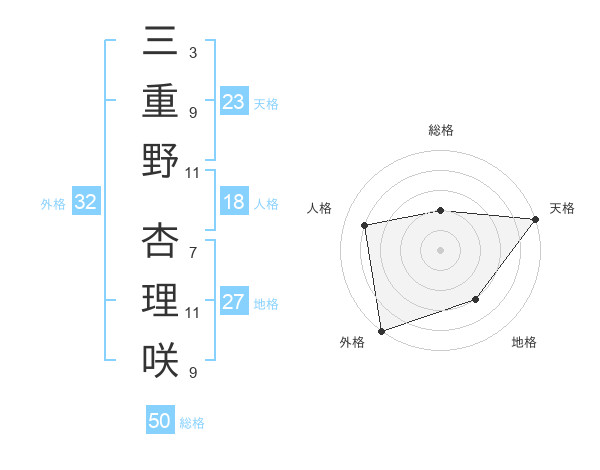 三重野 杏理咲さんを姓名の画数から五運を鑑定