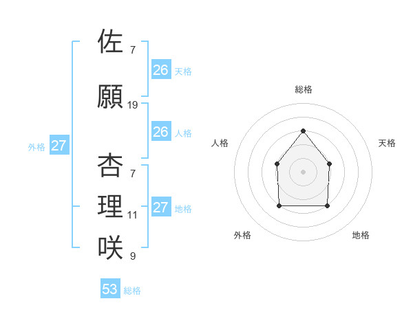 佐願 杏理咲さんを姓名の画数から五運を鑑定