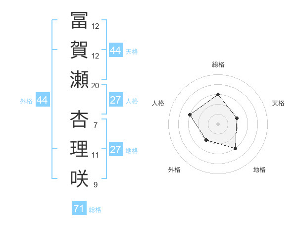 冨賀瀬 杏理咲さんの総格は71画の3点!