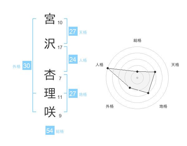 宮沢 杏理咲さんの総格は54画の1点