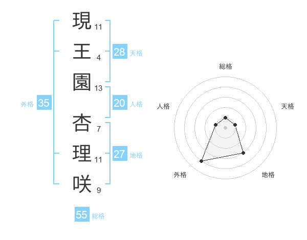現王園 杏理咲さんを姓名の画数から五運を鑑定