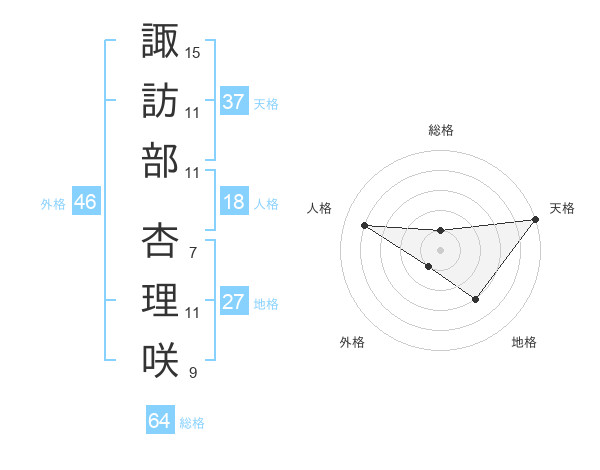 諏訪部 杏理咲さんの天格は37画の5点!