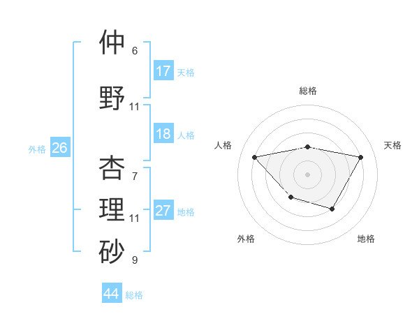 仲野 杏理砂さんの地格は27画の3点!