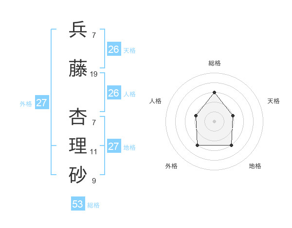 兵藤 杏理砂さんを姓名の画数から五運を鑑定