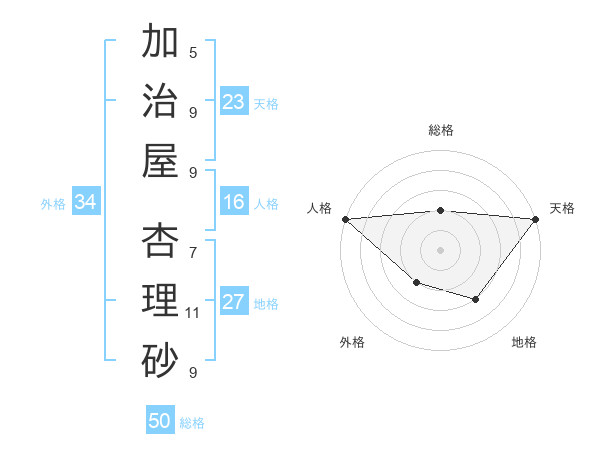 加治屋 杏理砂さんを姓名の画数から五運を鑑定
