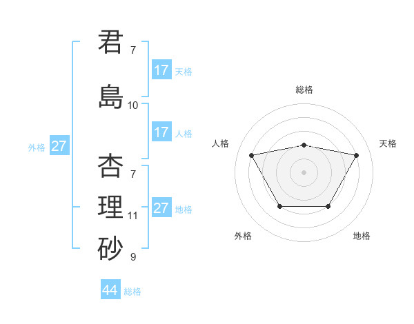 君島 杏理砂さんの天格は17画の4点!