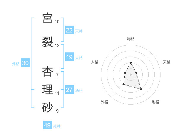 宮裂 杏理砂さんの総格は49画の2点!