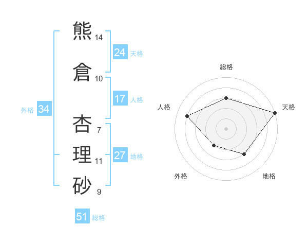 熊倉 杏理砂さんを姓名の画数から五運を鑑定