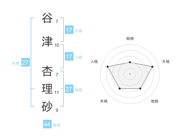 谷津 杏理砂さんを姓名の画数から五運を鑑定
