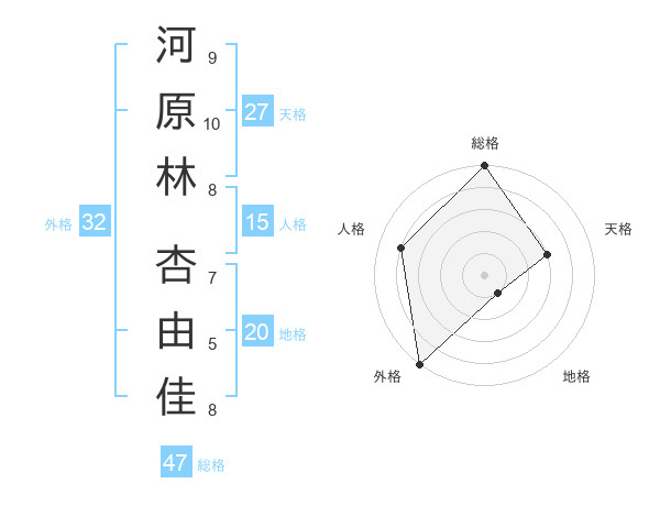 河原林 杏由佳さんを姓名の画数から五運を鑑定