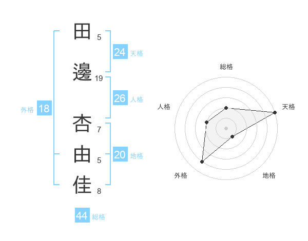 田邊 杏由佳さんの天格は24画の5点!