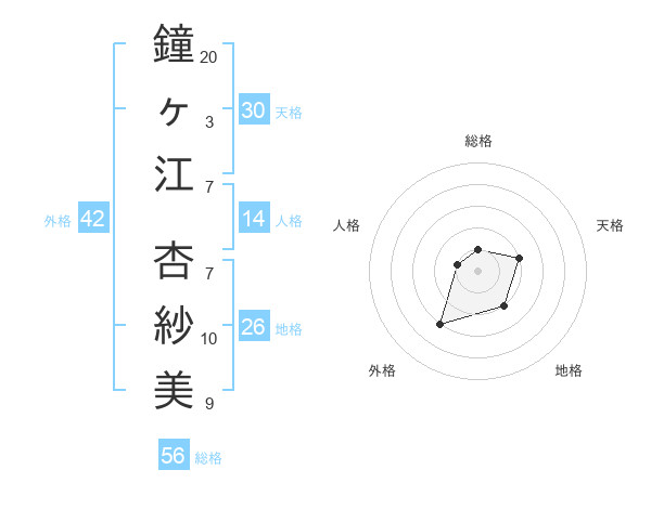 鐘ヶ江 杏紗美さんの総格は56画の1点!