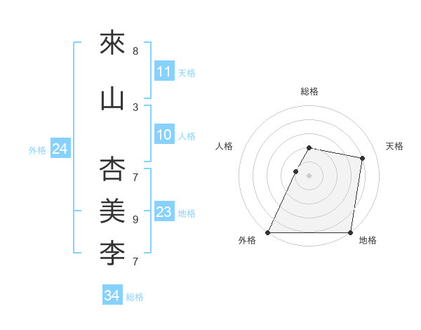 來山 杏美李さんを姓名の画数から五運を鑑定