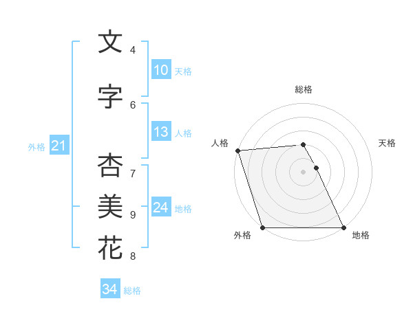 文字 杏美花さんの総格は34画の2点!