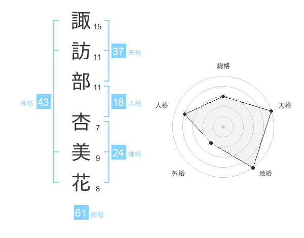 諏訪部 杏美花さんを姓名の画数から五運を鑑定