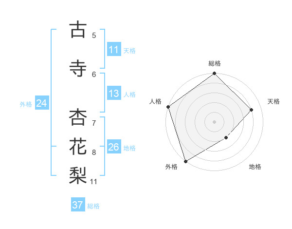 古寺 杏花梨さんの外格は24画の5点!