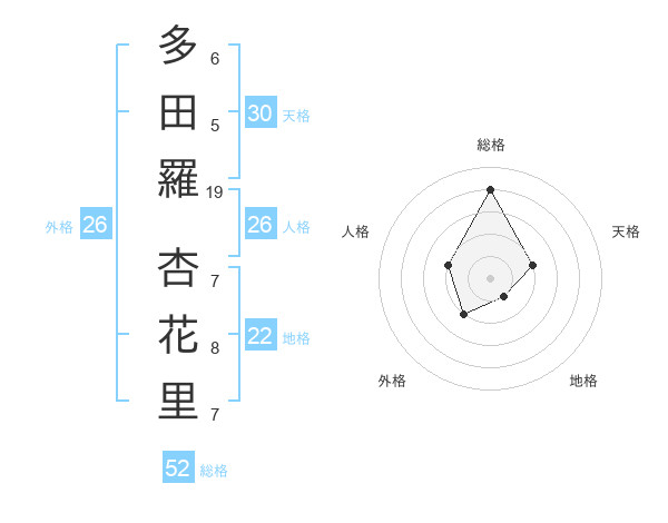 多田羅 杏花里さんの総格は52画の4点!