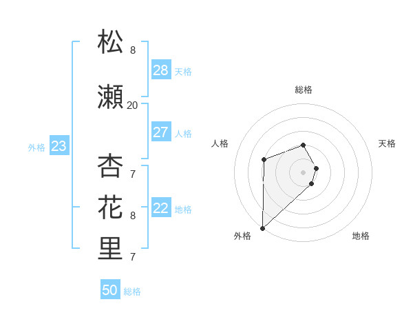 松瀬 杏花里さんを姓名の画数から五運を鑑定