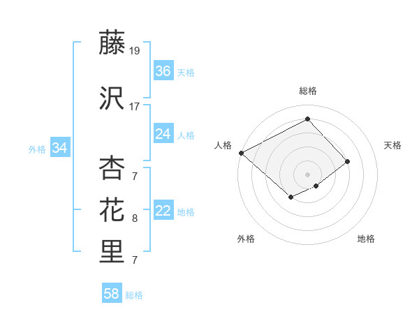 藤沢 杏花里さんを姓名の画数から五運を鑑定