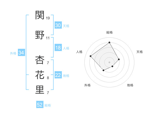 関野 杏花里さんを姓名の画数から五運を鑑定