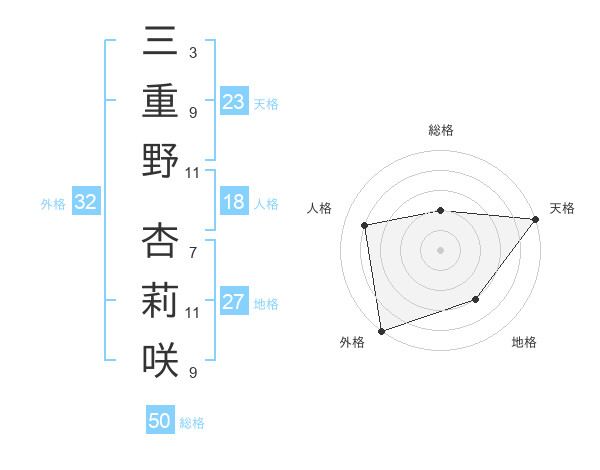 三重野 杏莉咲さんの総格は50画の2点