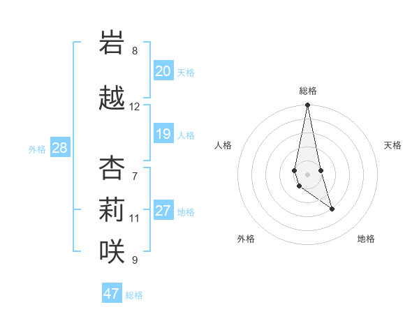 岩越 杏莉咲さんを姓名の画数から五運を鑑定