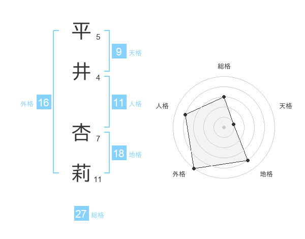 平井 杏莉さんを姓名の画数から五運を鑑定