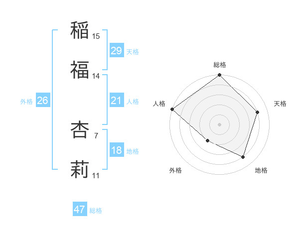 稲福 杏莉さんの天格は29画の4点!