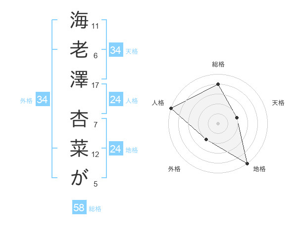 海老澤 杏菜がさんを姓名の画数から五運を鑑定