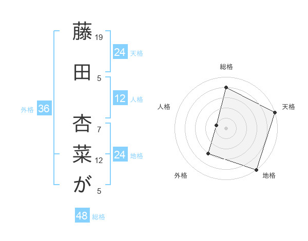 藤田 杏菜がさんを姓名の画数から五運を鑑定