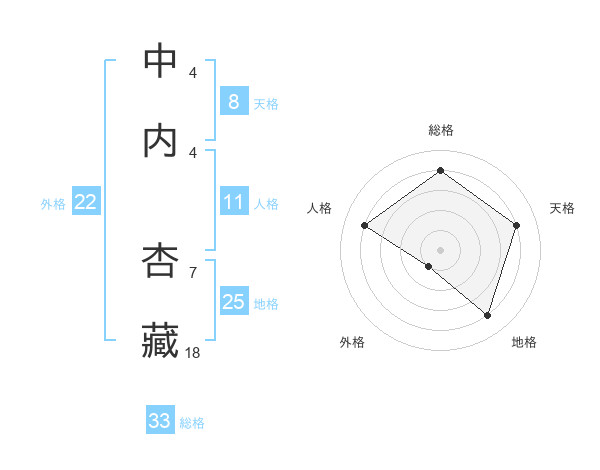 中内 杏藏さんの総格は33画の4点!