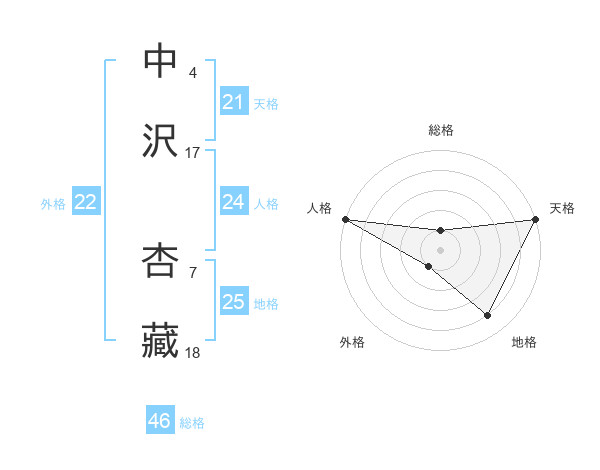 中沢 杏藏さんの天格は21画の5点!