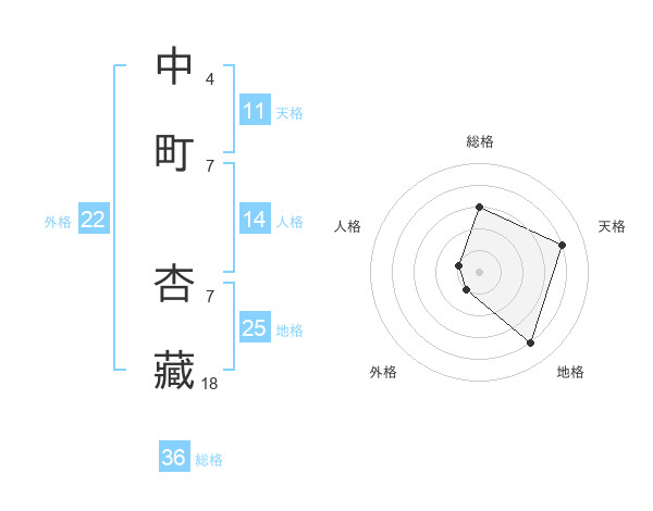中町 杏藏さんを姓名の画数から五運を鑑定