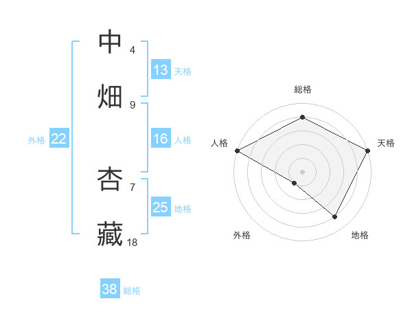 中畑 杏藏さんを姓名の画数から五運を鑑定