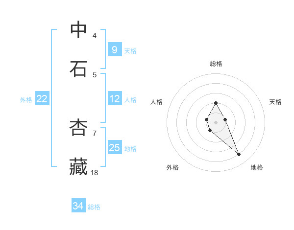 中石 杏藏さんの総格は34画の2点!