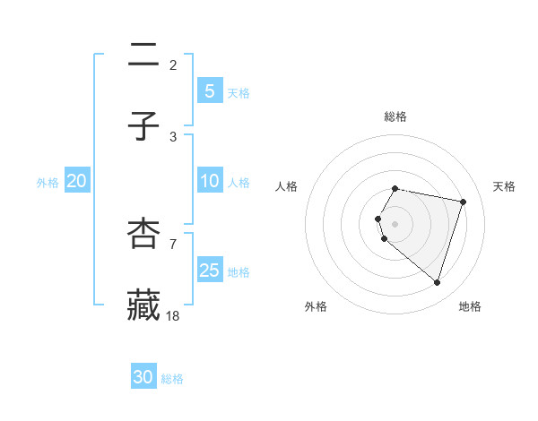 二子 杏藏さんを姓名の画数から五運を鑑定