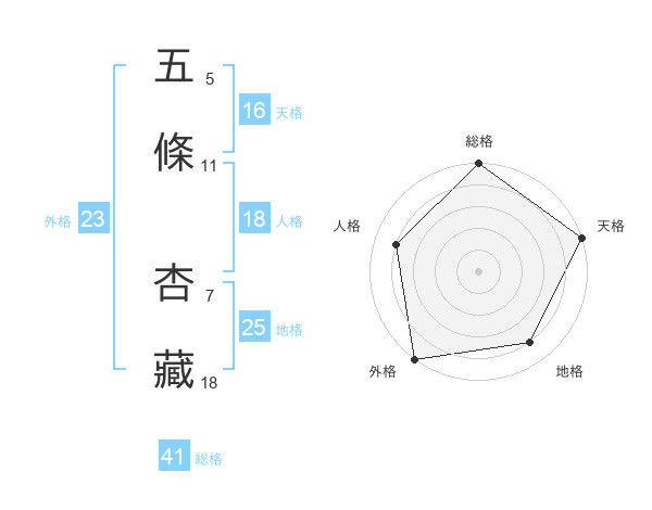 五條 杏藏さんを姓名の画数から五運を鑑定